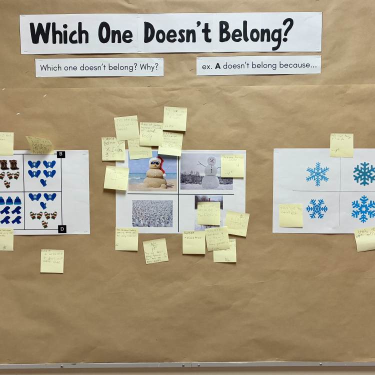 We have a math routine engagement board displayed in the hallway outside our library - the central hub of our school. The rotating board invites all students K through 7 to engage in math and to spark ongoing curiosity, critical thinking and conversation. This routine encourages observation, reasoning, and discussion, helping students see that math is everywhere in the world around them.